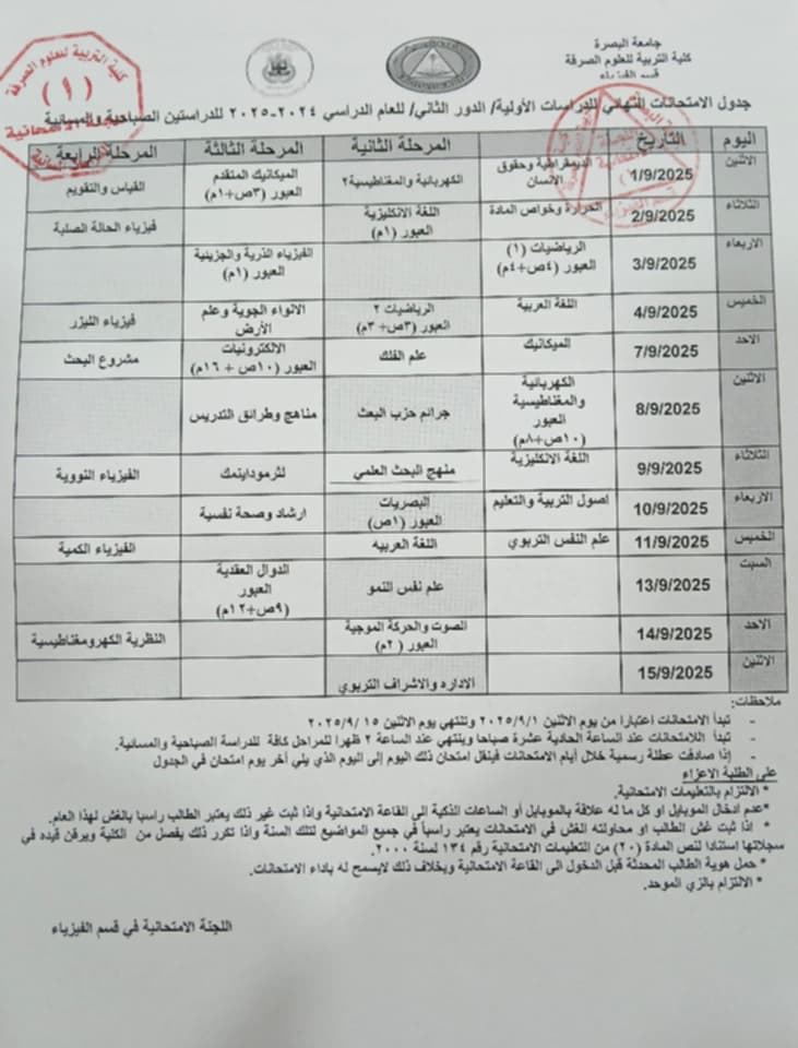 Announcement of the final exam schedule for the second semester of the 2024-2025 academic year.