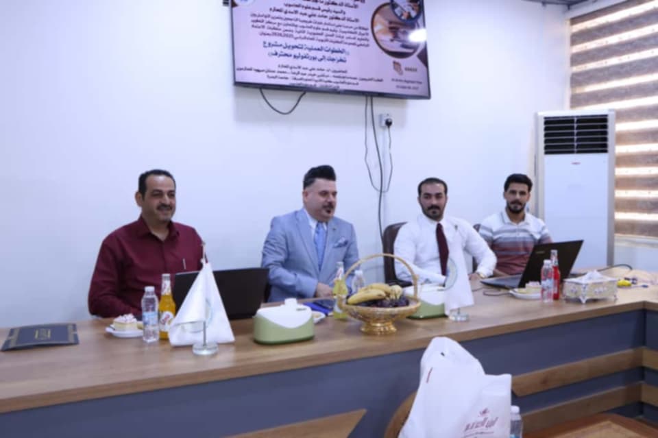 The initiative represents a practical embodiment of the Ministry of Higher Education's approach to linking educational outcomes with the needs of the job market. It aims to transform graduation projects from traditional academic research into comprehensive professional portfolios. The initiative's practical content was delivered by the Head of the Computer Science Department, along with a group of distinguished graduates: graduate Nima Majed Nima, graduate Murtadha Haider Abdul Redha, and graduate Muhammad Adnan Sayhoud. They shared their valuable practical experience and successful examples from their real-life experiences in the job market.