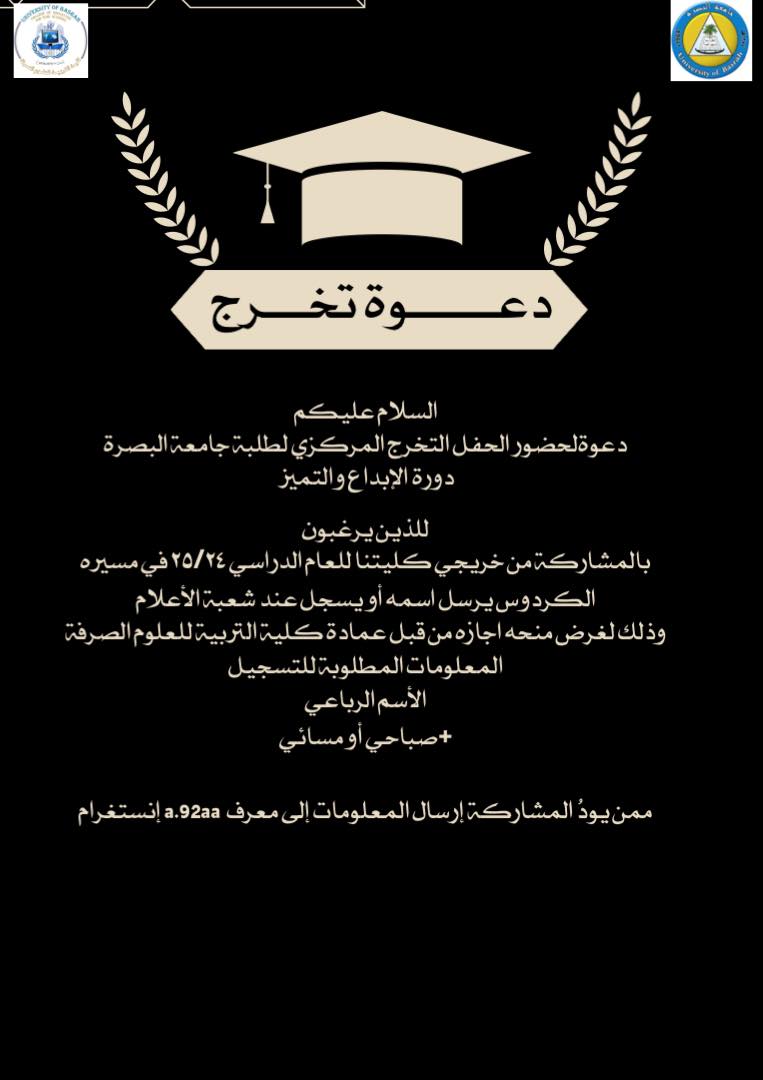 The College of Education for Pure Sciences announces the results of the competitive examination for postgraduate studies for the academic year 2023-2024