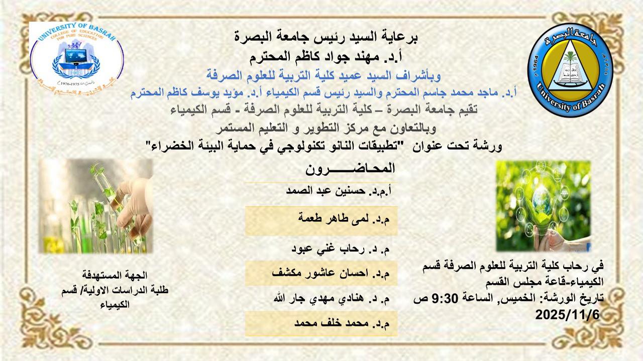 University of Basrah holds a workshop on (Nanotechnology Applications in Protecting the Green Environment)