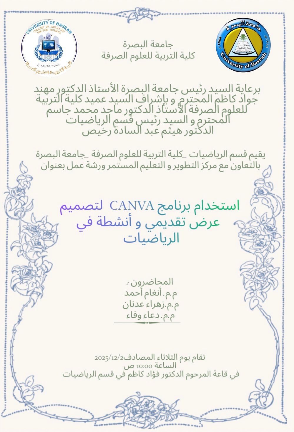 University of Basra holds a workshop on (using the (CANVA) program to design presentations and activities in mathematics)