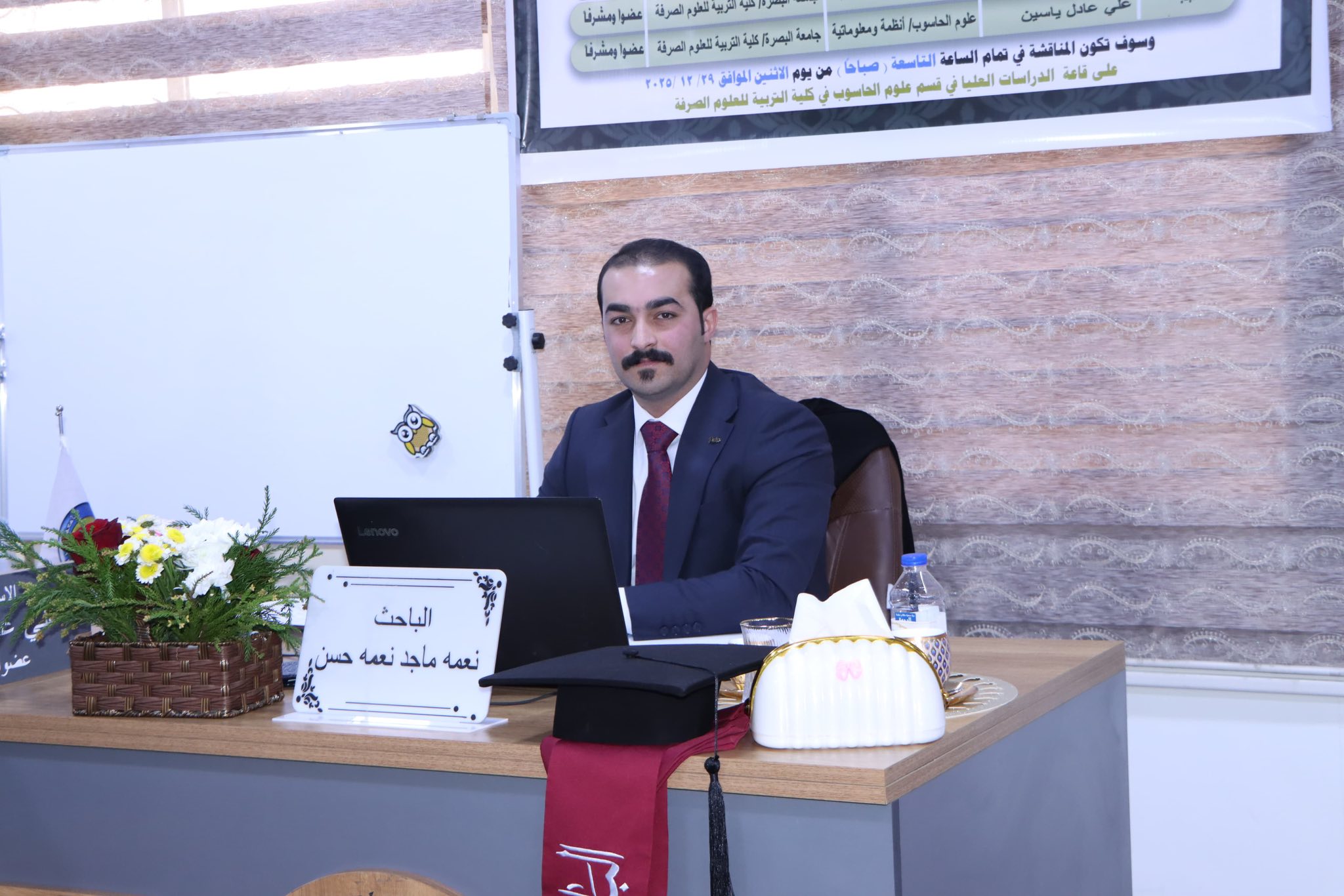 The College of Education for Pure Sciences, Department of Computer Science, reviewed a master's thesis on building a robust authentication and verification scheme in a VANET environment using blockchain. The thesis, submitted by researcher Na'ma Majid Na'ma, addressed the security of intelligent vehicle networks (VANETs) in environments integrated with health IoT systems, focusing on the security challenges associated with linking a vehicle driver's identity to the vehicle itself. Weak authentication mechanisms in this type of dynamic network expose sensitive health data to serious security risks, such as identity spoofing or data tampering.